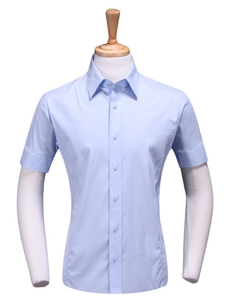重庆时尚衬衫定制公司欧迈制衣,特邀时尚版型师为男士量身设计天蓝短袖衬衫,高档优质衬衣面料多款颜色可供挑选,企业团购定做更加实惠,联系电话:023-63800591