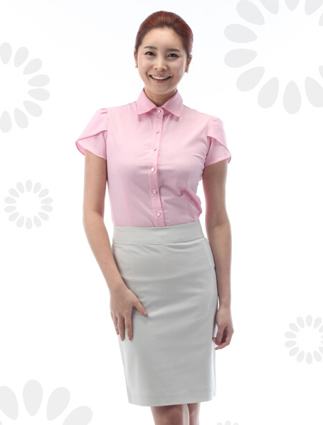 重庆定做粉色短袖女衬衫精选优质面料,女式衬衫泡泡袖做工细致穿着舒适,专业的银行夏季工服衬衫订做厂家,知名企业量身订制制服女士衬衫品牌值得信赖.
