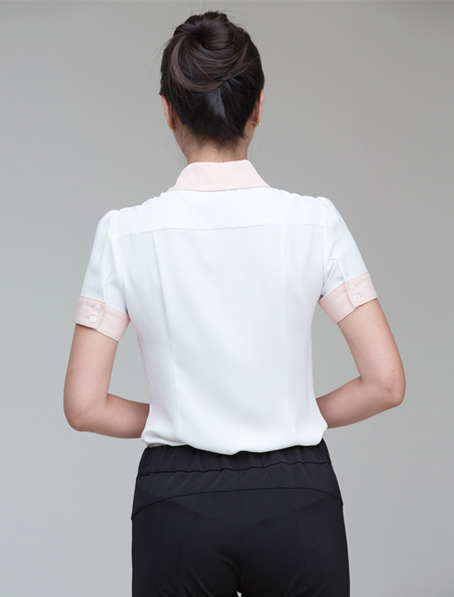 重庆定做女短袖衬衣,时尚拼色女士衬衫订做公司