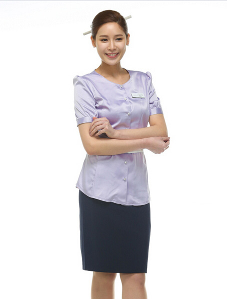 重庆定做女款浅紫色衬衣款式时尚,订做时尚衬衣加工厂家就到欧迈服饰,五星级酒店员工衬衣定制,记录定制女式衬衣每一个细微需要,欢迎客户前来订购女士衬衫.