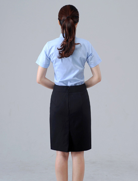重庆淡蓝女式执法衬衫订做,新款收腰衬衣定做