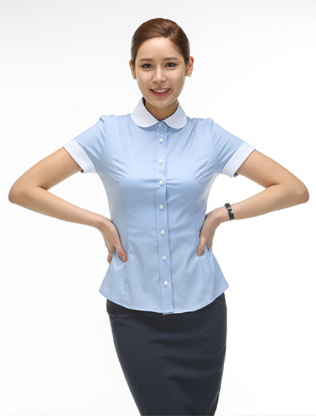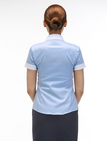 重庆淡蓝女款短袖衬衫定做,行政女衬衣订制加工厂家