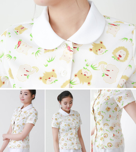 重庆版印花护士服定做,夏天短袖护士服定织面料