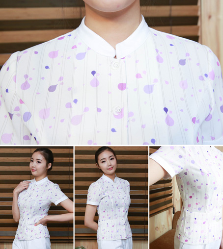 重庆定做白色印花分体护士服款式独特新颖,护士制服采用健康环保面料质量一流.韩版时尚护士服订做公司,护士服低价批发,护士服量身定制欢迎选择欧迈服饰.