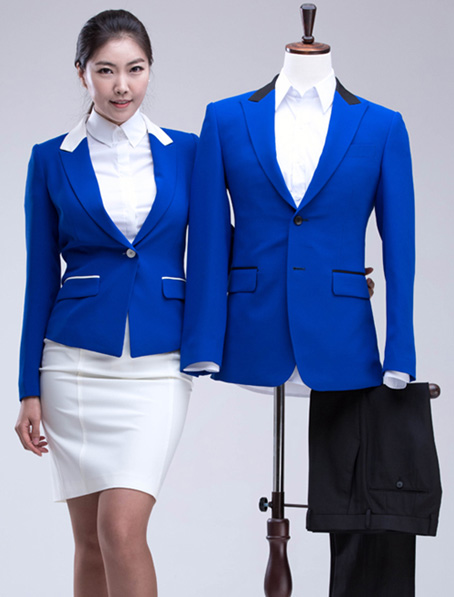 重庆宝蓝色职业装套裙定做,女式工作职业装订制厂家