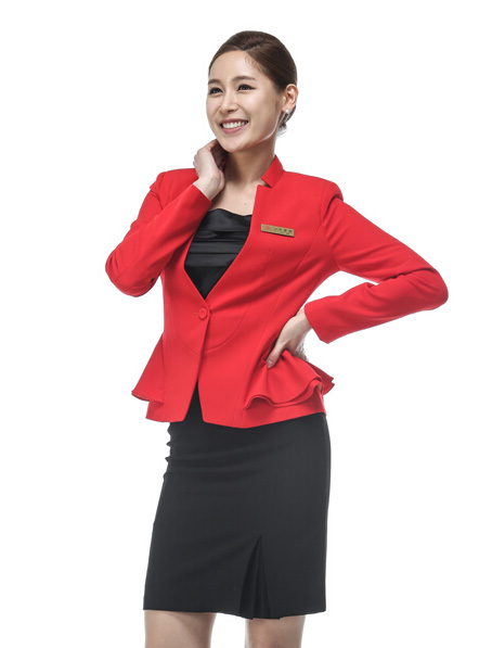 定制女装上衣职业装公司,红色职业制服套装订做厂家