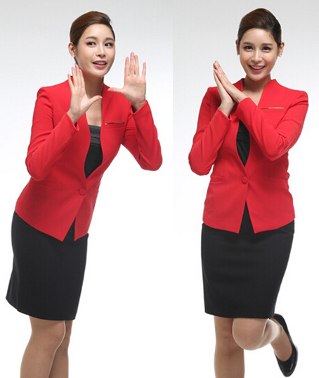 欧迈服饰提供大红色前台职业装量身定制,职业装美女款式设计图片,是深受好评的女性白领职业装订做厂家,订制职业装质量保证.职业装样衣免费企业标志设计图案.